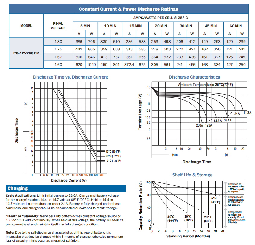蓄電池當(dāng)其內(nèi)部發(fā)生純化學(xué)反應(yīng),或因不純物污染造成電化學(xué)反應(yīng),或長久不用皆會耗電,此即稱為自我放電。自我放電之耗電程度乃視蓄電池構(gòu)造溫度、比重、不純物,使用過等而有所不同,一般在一天內(nèi)會放掉0.5~1%,蓄電池在使用前的保存期間就會自我放電,消耗蓄電量。當(dāng)蓄電池處于長期持續(xù)放電狀態(tài)時,則-旦形成白色硫酸鉛化,則即使再充電,也無法恢復(fù)其容量。庫存期間務(wù)必每1個月就充電一次。