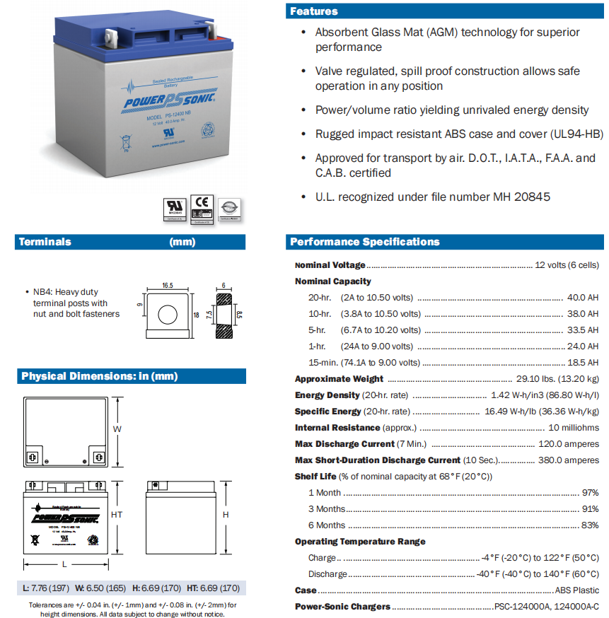 > Power-Sonic 密封鉛酸電池 PS-12400NB